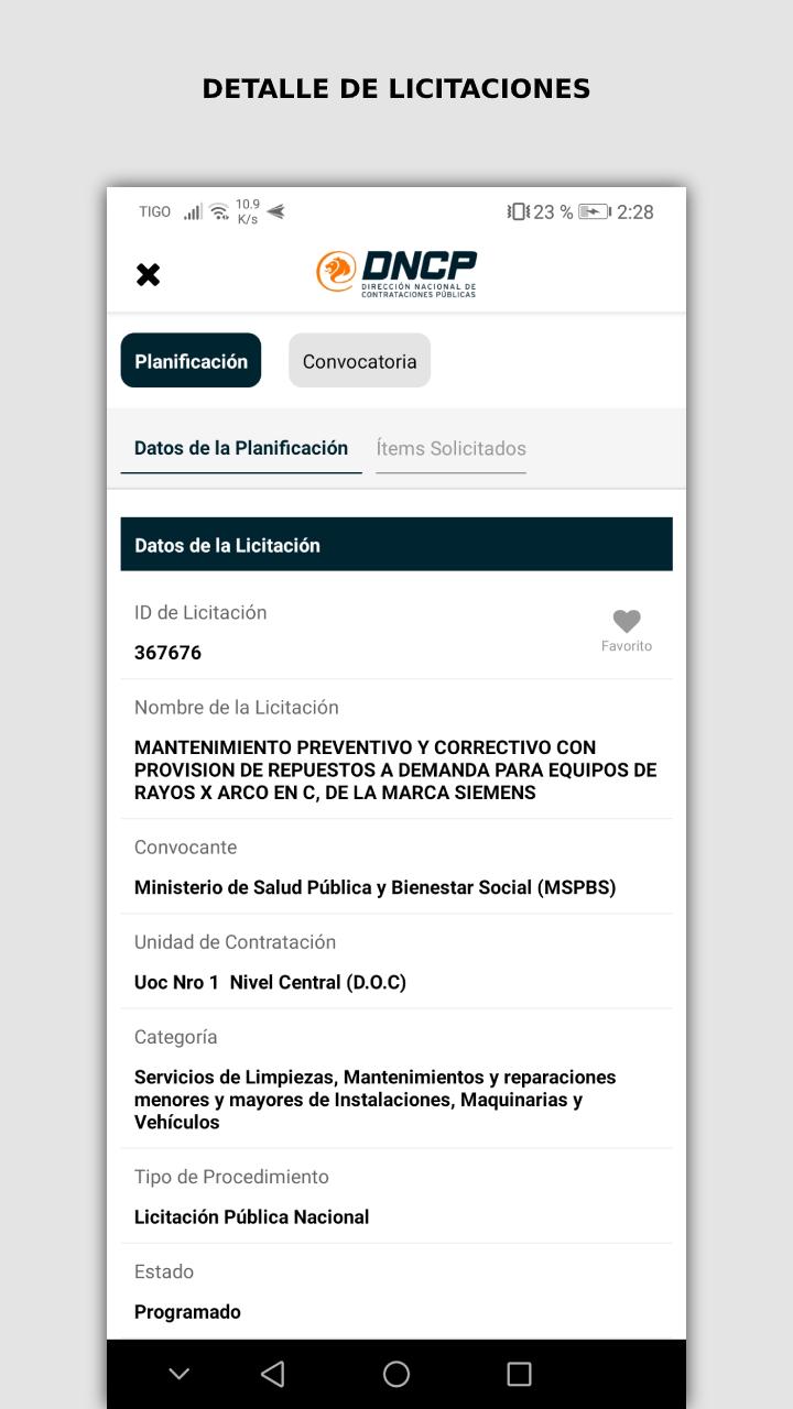 "Contracting Py" é a aplicação oficial do Android do Portal de Compras Públicas Paraguai.